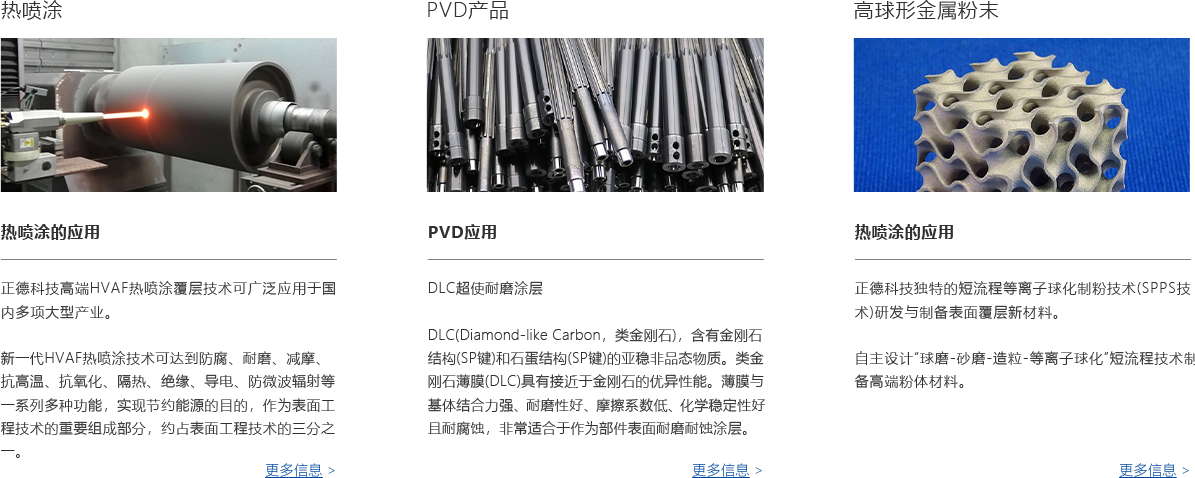 目前研发的高性能耐磨耐蚀涂层和新功能器件薄膜等先进涂层复合制备工艺技术,应用于表面工程领域,显著改善精密零部件和工模具的性能,提升使用寿命和质量,提高生产效率,降低综合成本,为微纳结构涂层核心金属零部件制造量身定制综合解决方案,是集研发、设计、生产、销售、服务于一体的国家高新技术企业。